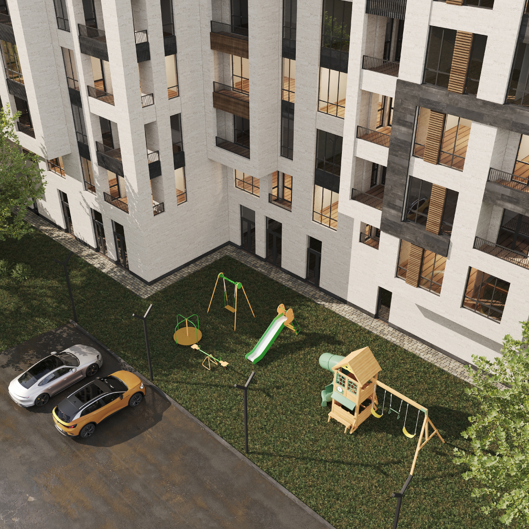 Ունի պատշգամբ, Ունի խաղահրապարակ, Ունի կայանատեղի, Ունի այգի, Մոտակայքում գտնվող դպրոց, Մոտակայքում գտնվող մանկապարտեզՔաղաքային այգի, բակային տարածք։